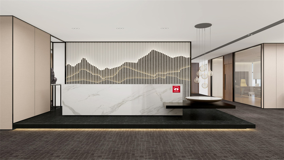 設(shè)計(jì)介紹:主要展示前臺(tái)、洽談區(qū)、走廊、貴賓區(qū)、會(huì)議室、辦公區(qū)等各個(gè)區(qū)域?qū)嵨飯D,設(shè)計(jì)師們采用現(xiàn)代簡(jiǎn)約風(fēng)格辦公室設(shè)計(jì),主要以白色為主,藍(lán)色更符合智能化科技的公司形象,通過(guò)幾何圖形與條紋裝飾打造科技智能的辦公空間。